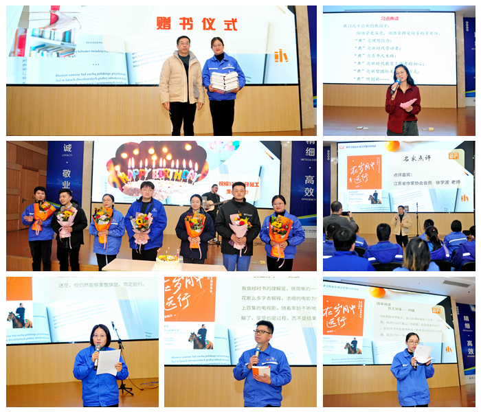 活動中,高級歷史老師、國家二級心理咨詢師姚北平帶領(lǐng)大家進行了《心有大我 強企有我 至誠報國》為主題的“習語典讀”分享。來自集團綜合管理部的多位員工,分享了近期閱讀《在歲月中遠行》一書后,關(guān)于行走、關(guān)于閱讀和愛的意義,并結(jié)合生活、工作實際暢談收獲感悟。江蘇省作家協(xié)會會員徐學波老師代表市委宣傳部,向我司捐贈一批圖書,助力企業(yè)充實職工書屋、推廣閱讀角等陣地建設(shè),更好地搭建閱讀交流平臺。結(jié)合大家的讀書分享,徐老師還作了延伸點評。