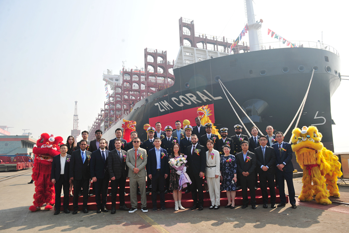 Sally Cheung女士將N1370船命名為“ZIM CORAL”輪。