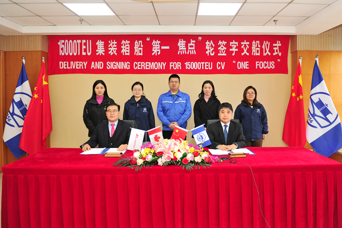 為SEASPAN建造的第五艘15000TEU集裝箱船“ONE FOCUS”輪交付離廠