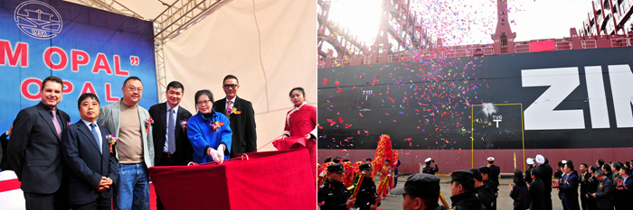 1月17日,我集團(tuán)與SEASPAN、ZIM公司共同為新船舉行了隆重的命名儀式。命名人蔡霞女士,以星(ZIM)上海總經(jīng)理李敬東先生,SEASPAN首席商務(wù)官李堃先生,SEASPAN資產(chǎn)管理部副總裁J.J. Meyer先生,SEASPAN資產(chǎn)管理部項(xiàng)目經(jīng)理蘇小華先生,以及我集團(tuán)董事長(zhǎng)任樂天先生、集團(tuán)副總經(jīng)理兼新?lián)P子造船總經(jīng)理杜成忠先生、集團(tuán)副總經(jīng)理周科偉先生、集團(tuán)副總經(jīng)理吉宏飛先生、新?lián)P子造船副總經(jīng)理倪榮先生等領(lǐng)導(dǎo)和嘉賓共同出席了命名儀式。