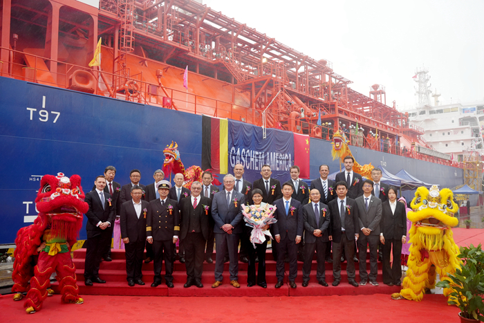 Hartmann代表Ulrich Adami先生表示:本船的順利交付得益于經(jīng)驗(yàn)豐富的設(shè)計(jì)團(tuán)隊(duì)、技藝精湛且勤勉務(wù)實(shí)的造船廠、專業(yè)權(quán)威的船級(jí)社以及全球最優(yōu)秀的監(jiān)造團(tuán)隊(duì)的共同協(xié)作。這是世界第二艘半冷半壓式4萬(wàn)立方米液化石油氣/液氨運(yùn)輸船,她的同型船“GASCHEM EUROPE”已經(jīng)證明了這類環(huán)保型液化石油氣/液氨運(yùn)輸船的高效性能。同時(shí),我們也非常自豪能夠繼續(xù)與揚(yáng)子三井造船攜手開(kāi)展新的合作!