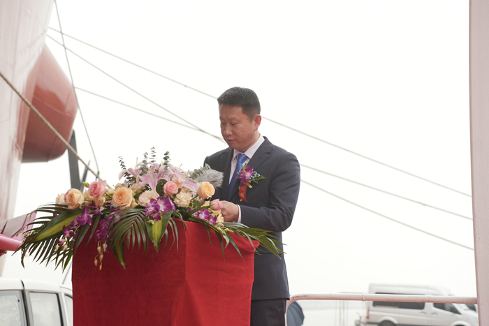 教母中信銀行蘇州分行副行長(zhǎng)倪衛(wèi)芳女士,HARTMANN董事會(huì)執(zhí)行總監(jiān)Ulrich Adami先生、董事會(huì)商務(wù)總監(jiān)Jan-Lars Kruse先生、新造船經(jīng)理Ionut Cornea先生、大中華區(qū)區(qū)域經(jīng)理龍葉飛先生,DNV船級(jí)社江陰站經(jīng)理史勇林先生,中信銀行太倉(cāng)分行行長(zhǎng)顧衛(wèi)先生,三井物產(chǎn)上海井上伸一先生、住田直也先生、田野先生,揚(yáng)子江船業(yè)集團(tuán)副總經(jīng)理丁建文先生,集團(tuán)副總經(jīng)理兼揚(yáng)子三井總經(jīng)理宋書(shū)明先生,揚(yáng)子三井CFO石丸雄次先生、COO田村光路先生、副總經(jīng)理陳國(guó)強(qiáng)先生及總經(jīng)理助理中尾慎一先生以及各合作方、員工等代表參加了命名交船儀式。