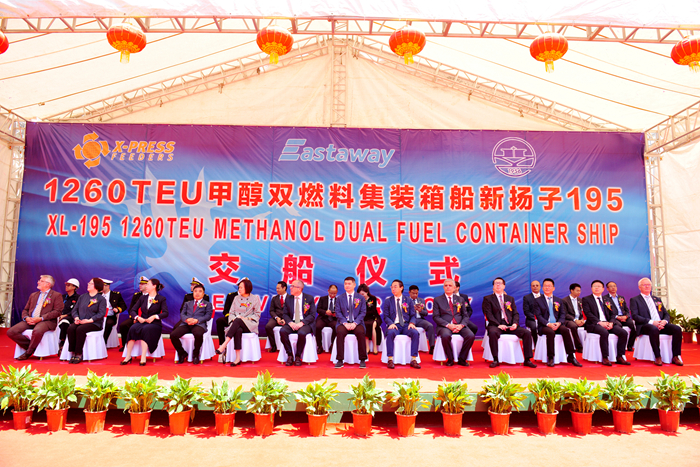 5月16日上午,我集團(tuán)新?lián)P子造船為船東新加坡 X-Press Feeders公司建造的首制1260TEU甲醇雙燃料集裝箱船簽字交付。該型甲醇雙燃料集裝箱船由中國(guó)船舶及海洋工程設(shè)計(jì)研究院(MARIC)聯(lián)合德國(guó)知名設(shè)計(jì)公司共同設(shè)計(jì)優(yōu)化,是一艘裝箱量可達(dá)1260TEU的敞口支線集裝箱船,能夠裝載4種不同尺寸的集裝箱。